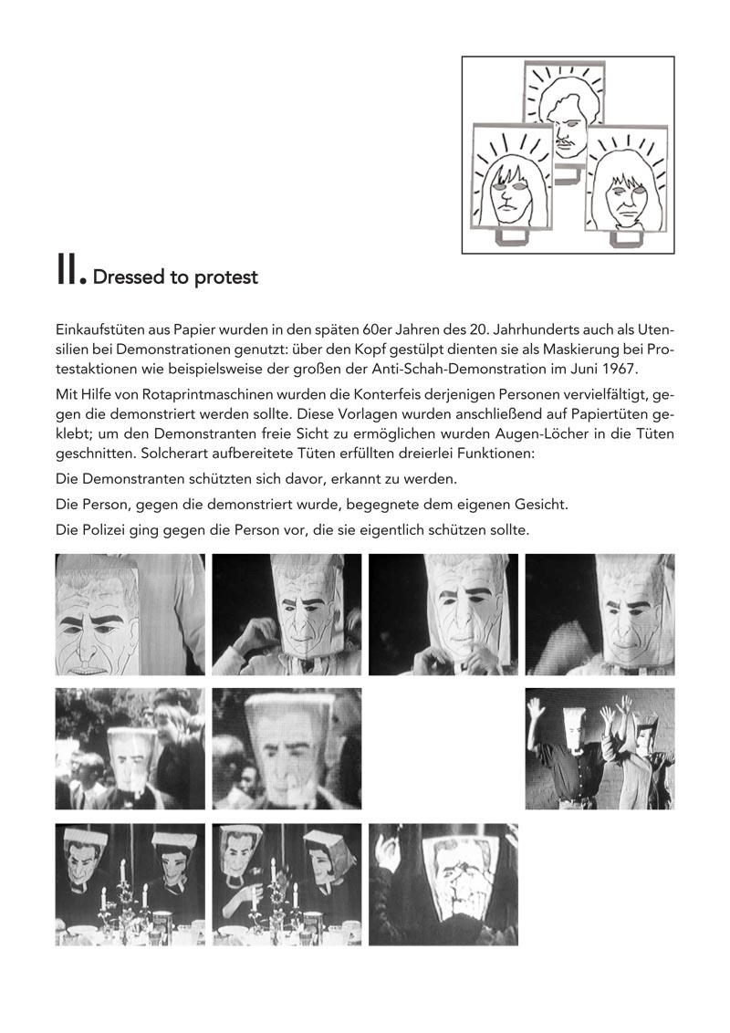3 Papiertüten mit gezeichneten Konterfeis Gudrun Ensslin, Andreas Baader, Ulrike Meinhof · Format je 35 x 42 cm